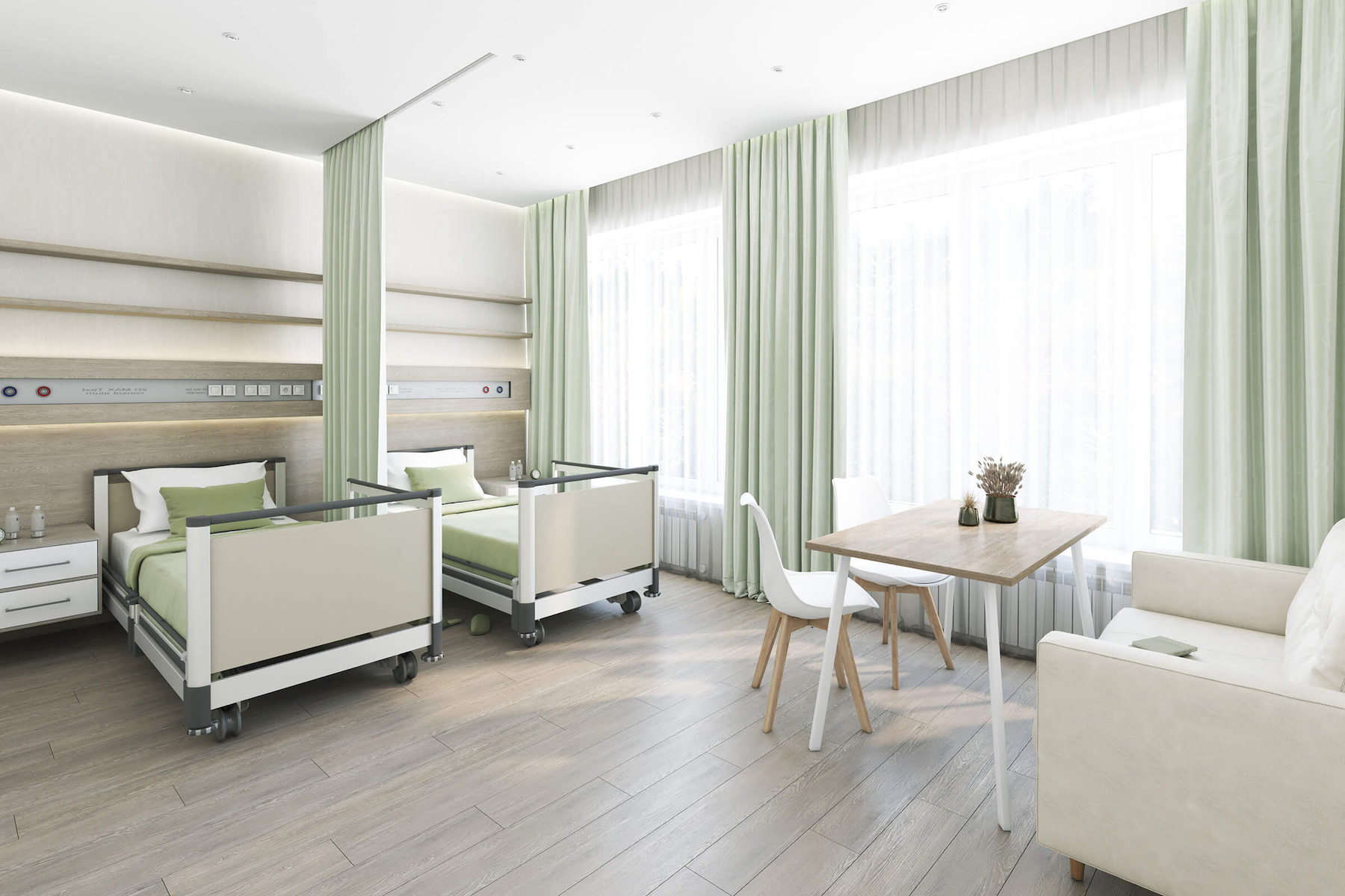 Благодаря системе SmartCare, пациенты и медицинский персонал легко управлять шторами, телевизором, освещением, кондиционером и даже изменять цветовые схемы помещения. Все эти параметры контролируются через удобное мобильное приложение, что позволяет подстроить настройки под нужды каждого пациента и обеспечить их максимальное комфортное пребывание.