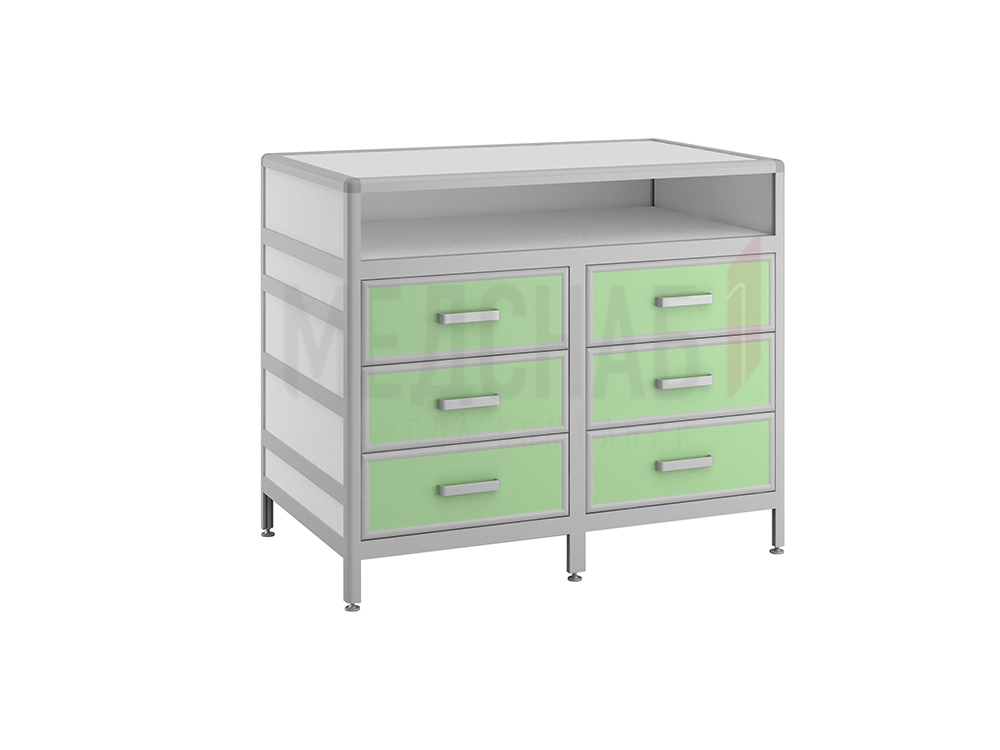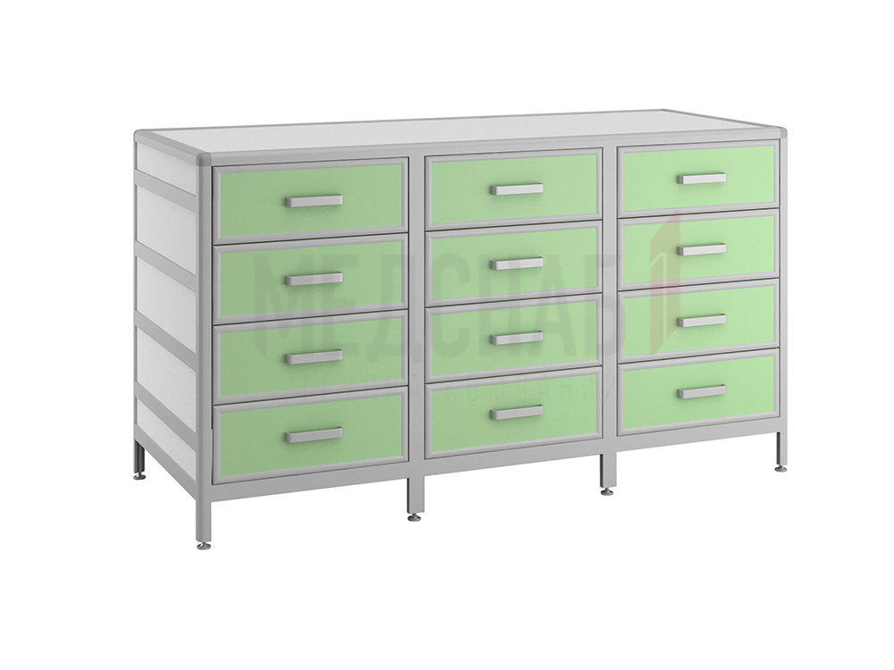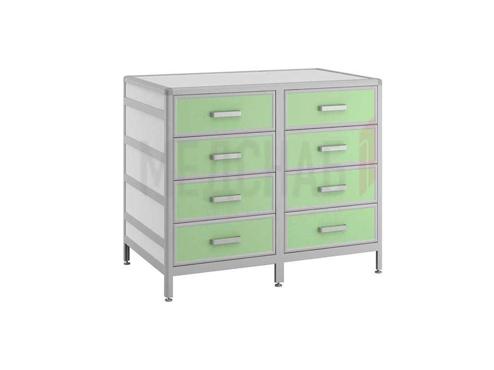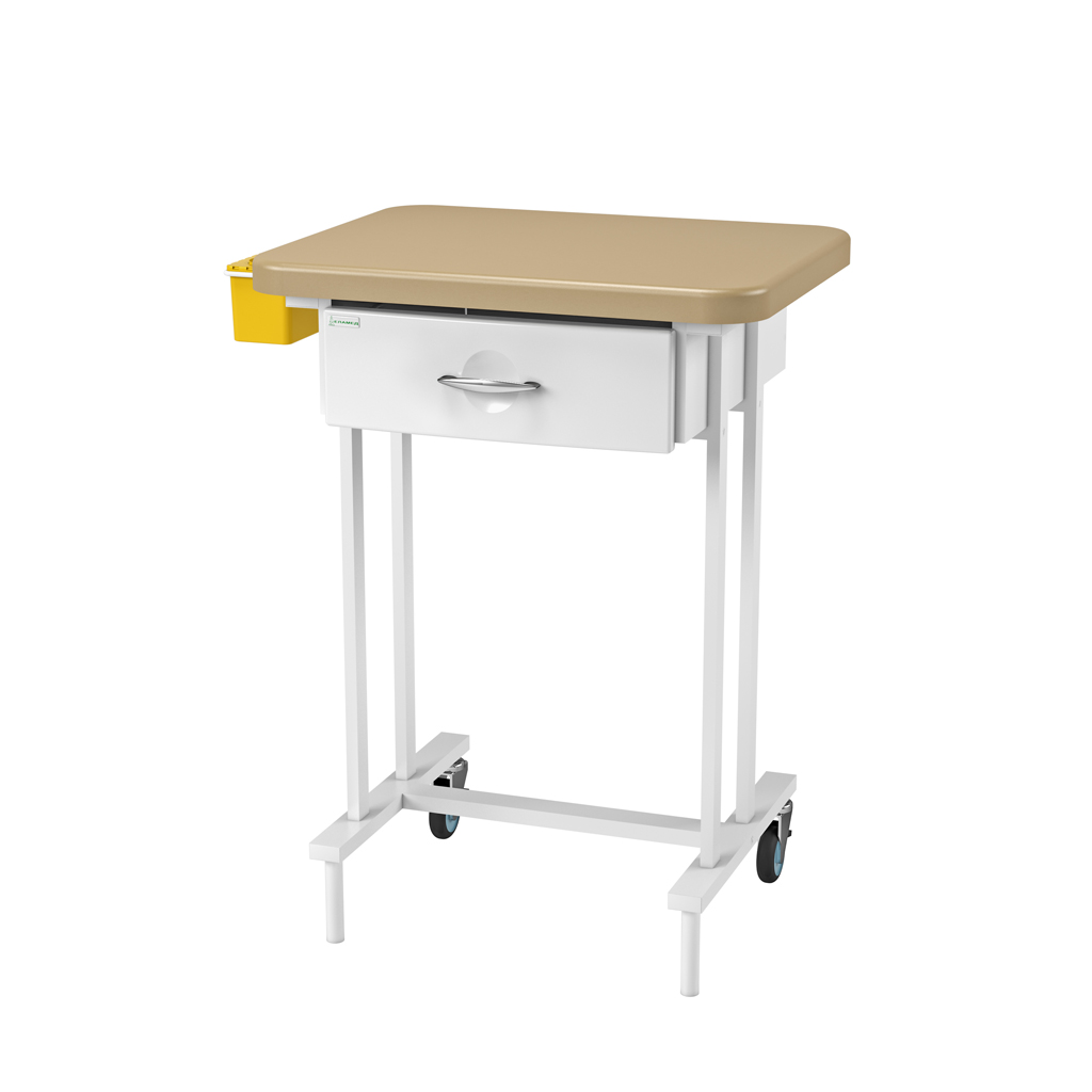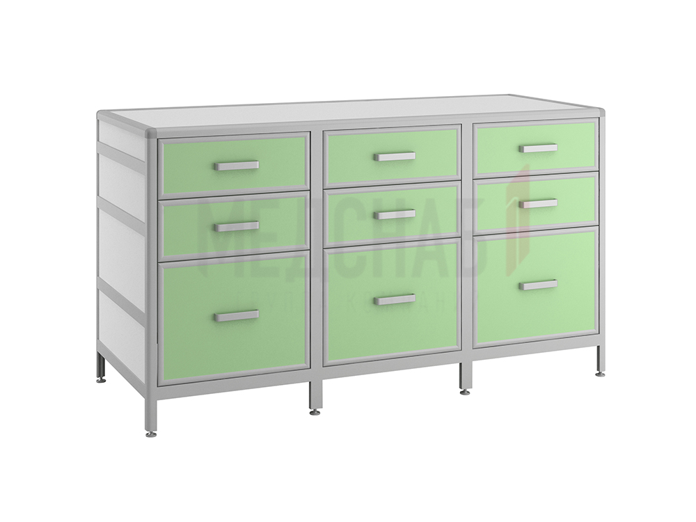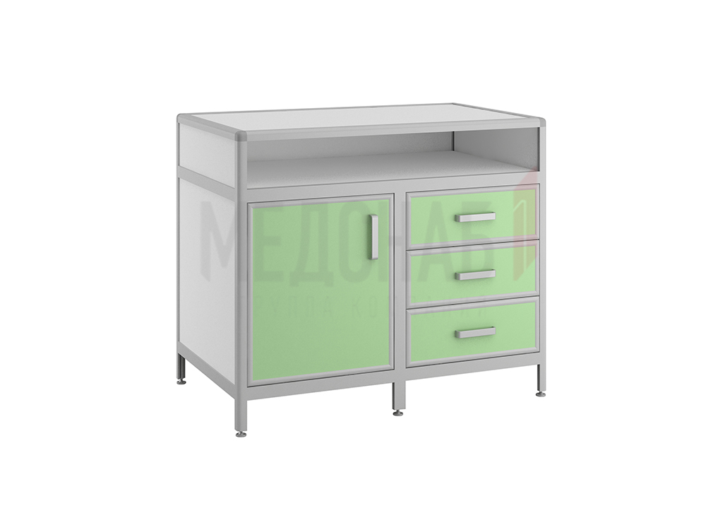 Столик для анестезиолога выполнен из нержавеющей стали. Столик имеет 3 выдвижных ящика и колесные опры, диаметром 75 мм.