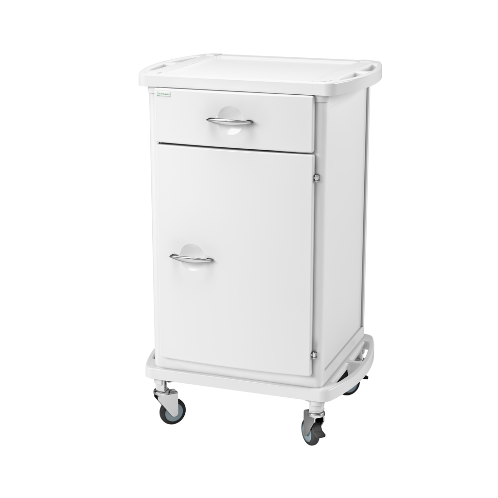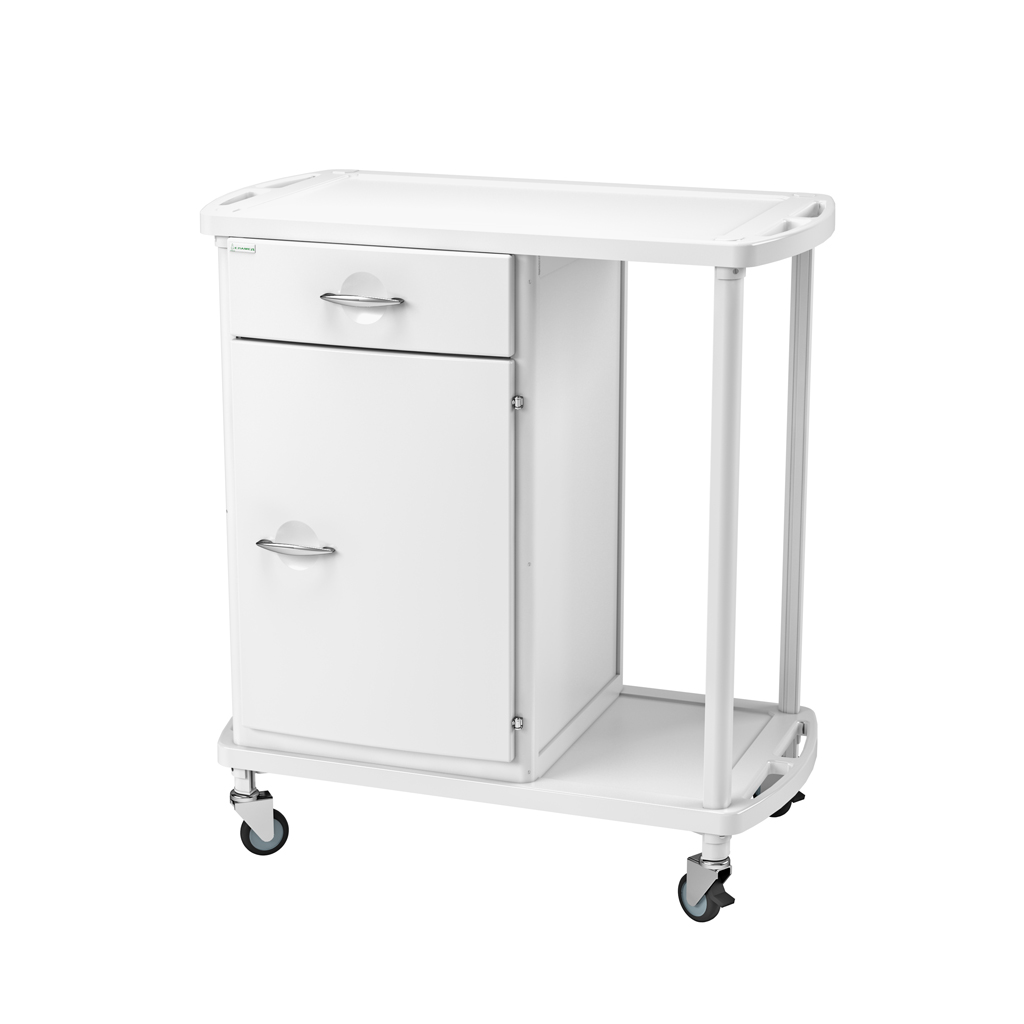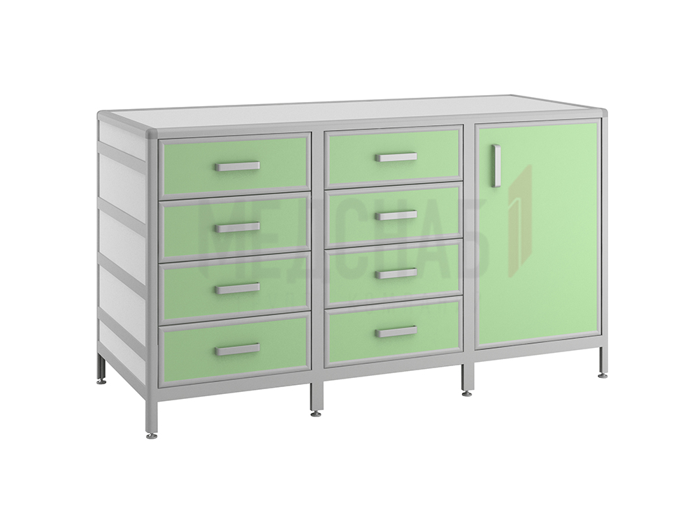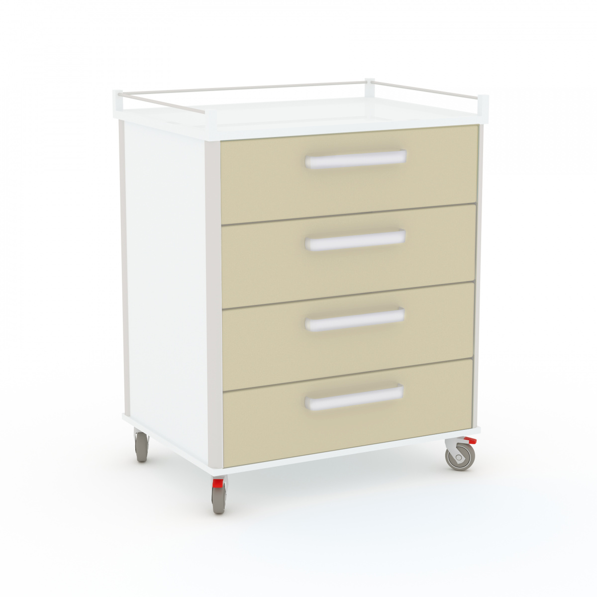 Столик для анестезиолога выполнен из нержавеющей стали. Столик имеет 3 выдвижных ящика и колесные опры, диаметром 75 мм.