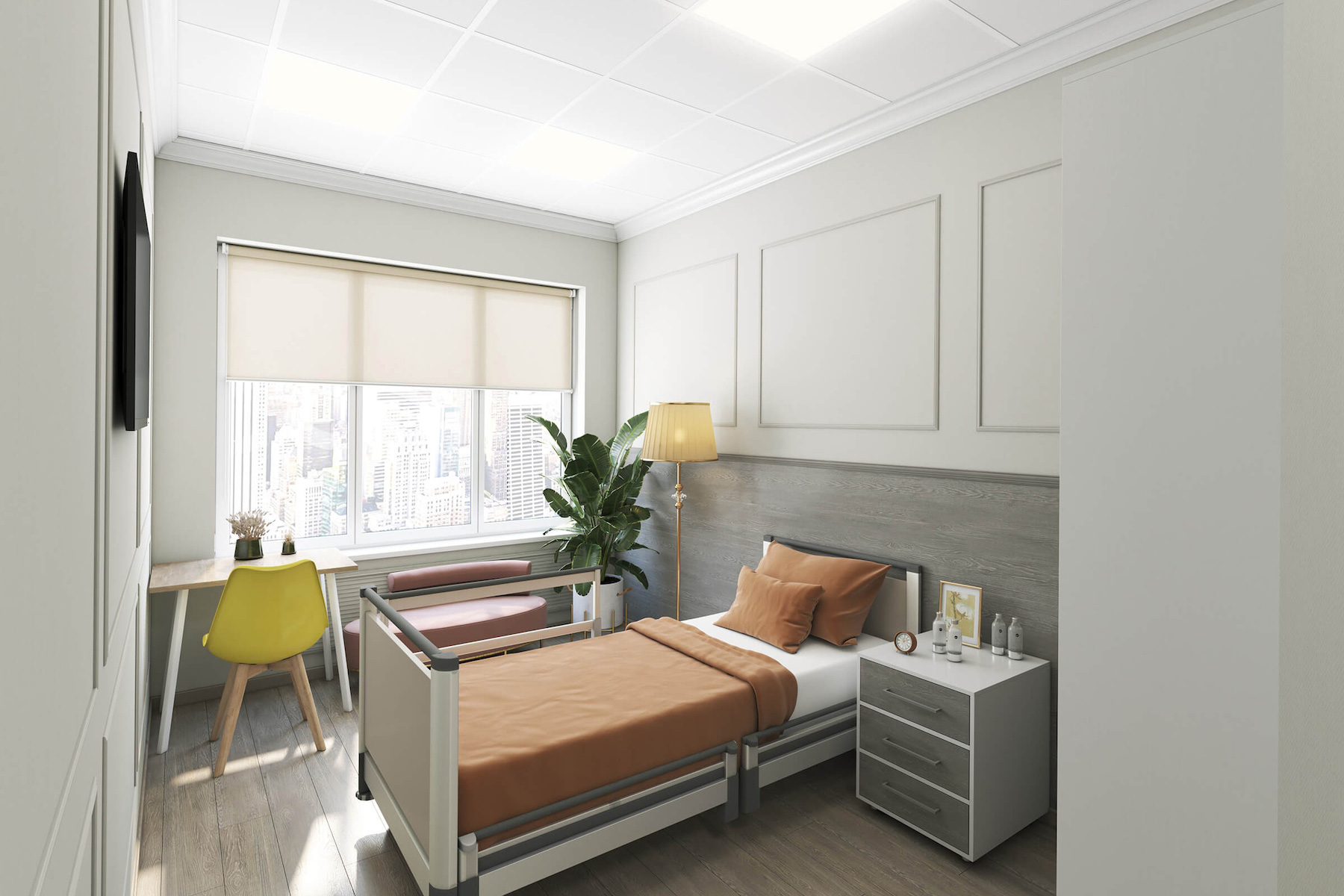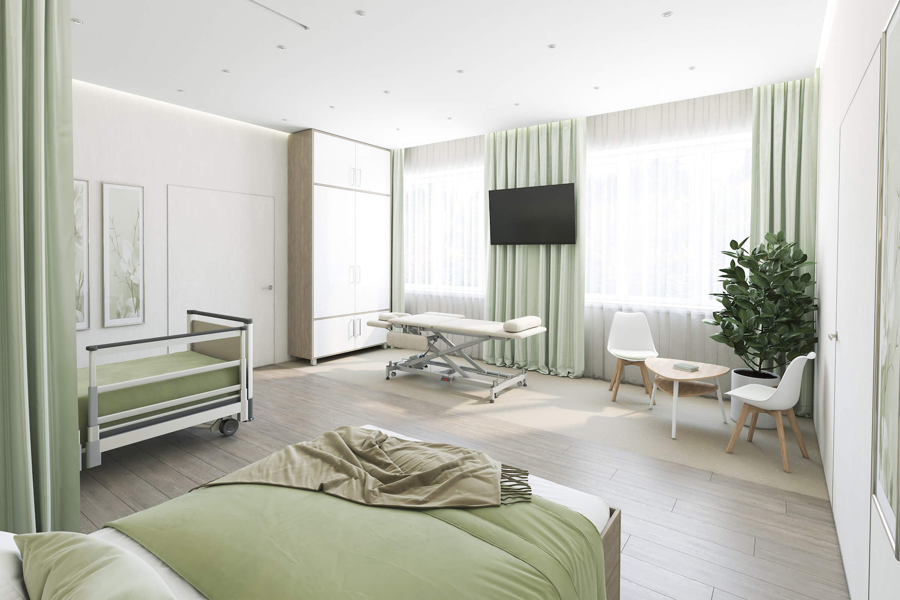Благодаря системе SmartCare, пациенты и медицинский персонал легко управлять шторами, телевизором, освещением, кондиционером и даже изменять цветовые схемы помещения. Все эти параметры контролируются через удобное мобильное приложение, что позволяет подстроить настройки под нужды каждого пациента и обеспечить их максимальное комфортное пребывание.